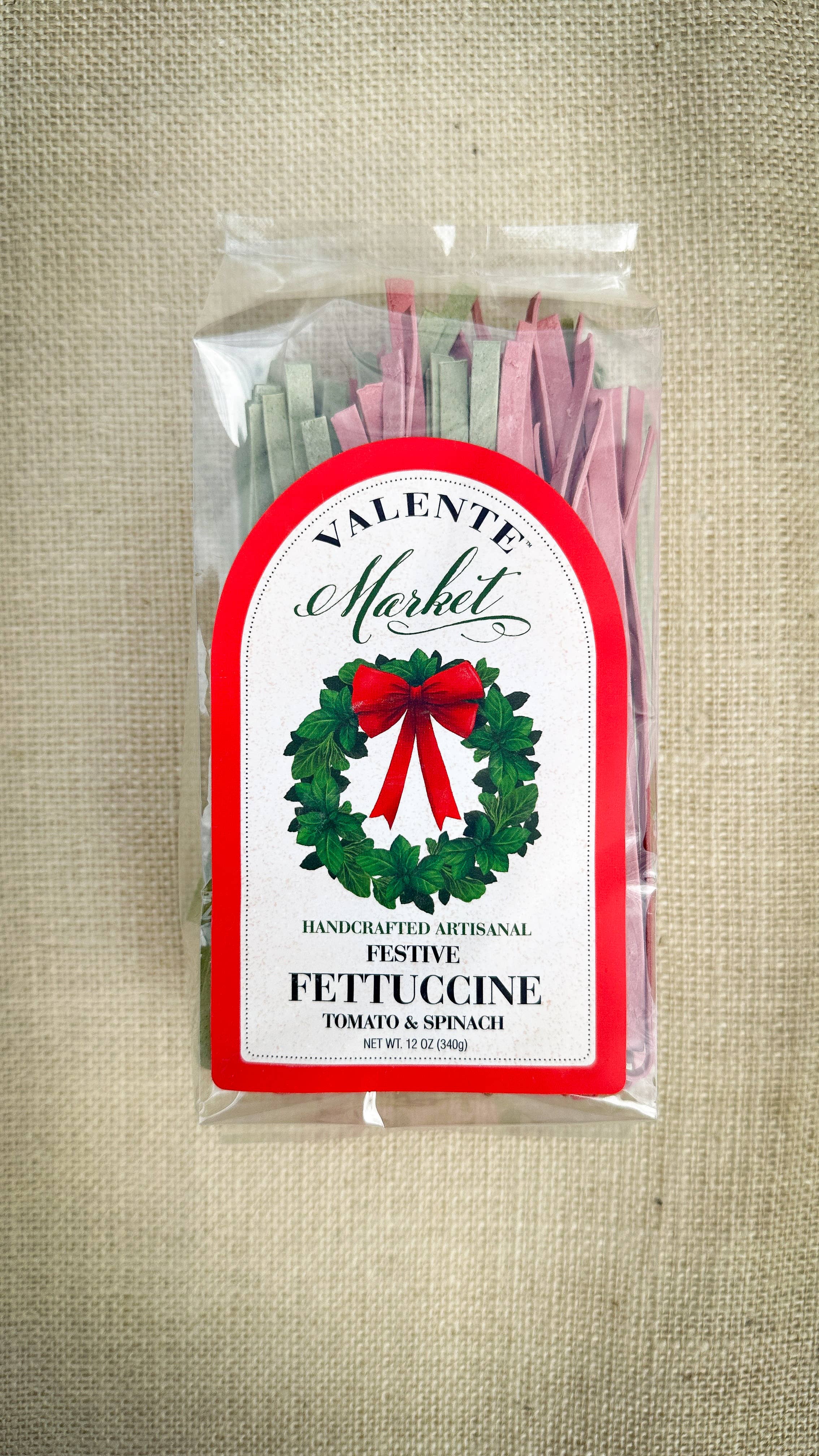 Fill your holiday baskets with seasonal cheer. Our spinach and tomato fettuccine is a festive mix of flavors. And tastes great too.