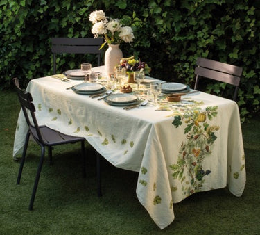 Indulge in a moment of relaxation and savor the scents of pumpkin, grape, and pine. Enjoy the soothing sounds of falling leaves as you dine in the warmth of the autumn sun. This collection offers a tablecloth, runner, and napkins, all sold individually for your convenience.