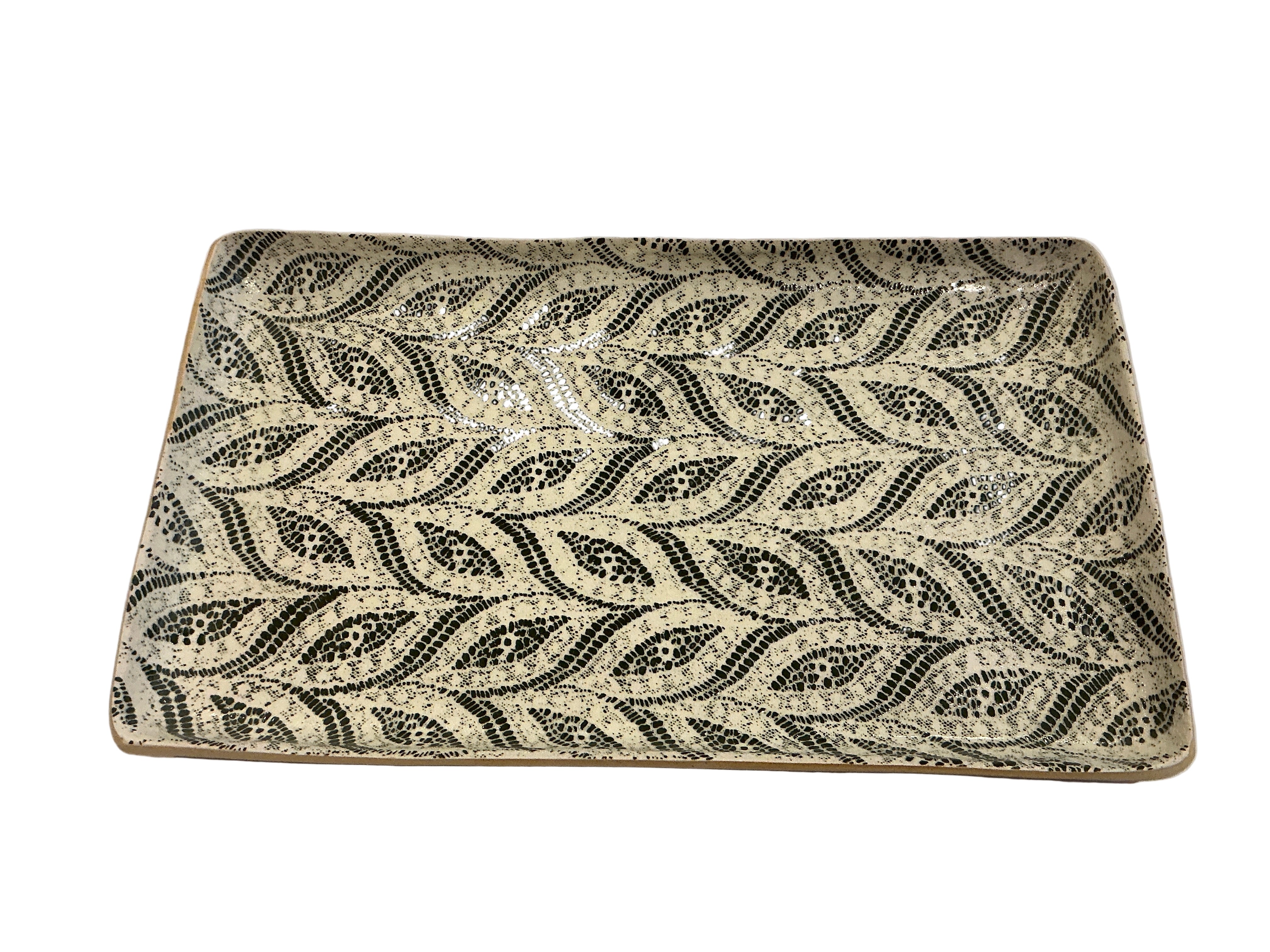 Handcrafted by TerraFirma in Brooklyn, this large rectangular stacking tray showcases artisanal pottery techniques with its distinctive paisley pattern. The warm pine color brings earthy sophistication to any space, whether displayed on a shelf or used functionally for organizing essentials. Each piece reflects the maker's attention to detail and commitment to quality ceramics. Perfect for collectors who appreciate authentic, locally-made home goods.