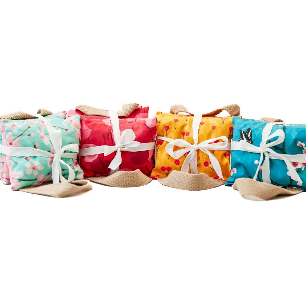 Filled with naturally cleaned cherry stones, this therapeutic pillow is wrapped in a teal cherry blossom cotton fabric and backed with cozy navy corduroy. Natural fiber handles are sewn into the ends for ease of use. Suitable for hot and cold treatment anywhere on the body to release tension and soothe muscle aches. Cherry stones hold their temperature longer than other natural fillers and produce a relaxing "rain stick" sound when handled. Each handmade cherry stone pillow measures 5.5" x 20"