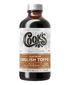 Buttery, nutty, and delectable, Cook Flavoring Company's Natural English Toffee Flavor is sure to tantalize tastebuds. This almond-infused flavor is the perfect addition to baked goods and icing, especially scrumptious in cinnamon rolls and scones.