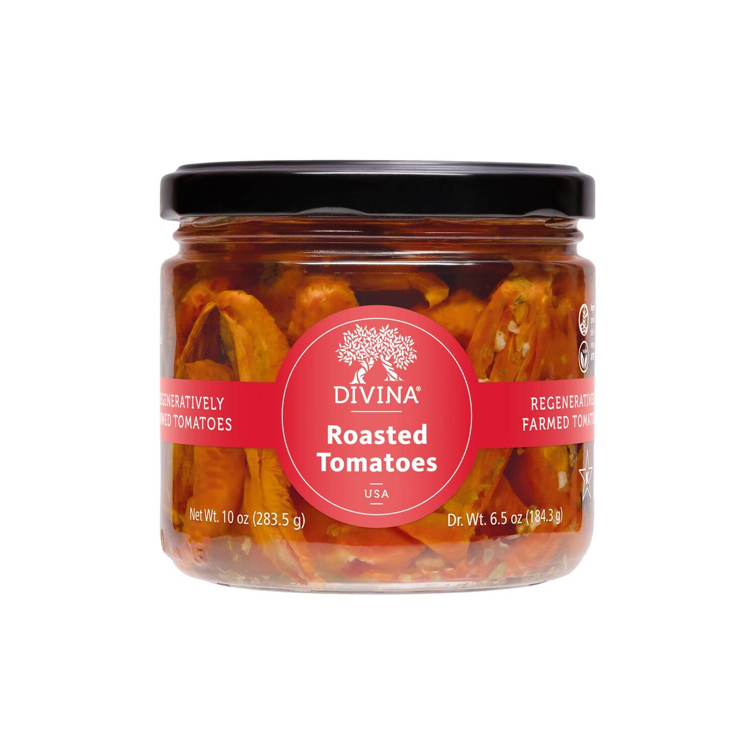 We roast our USA-grown tomatoes "low and slow" to ensure they stay juicy, robust and summery sweet. Marinated in garlic and herbs, these tomatoes are a star ingredient from breakfast (frittata, quiche) to lunch (sandwich, salad) to dinner (roast chicken, salmon).