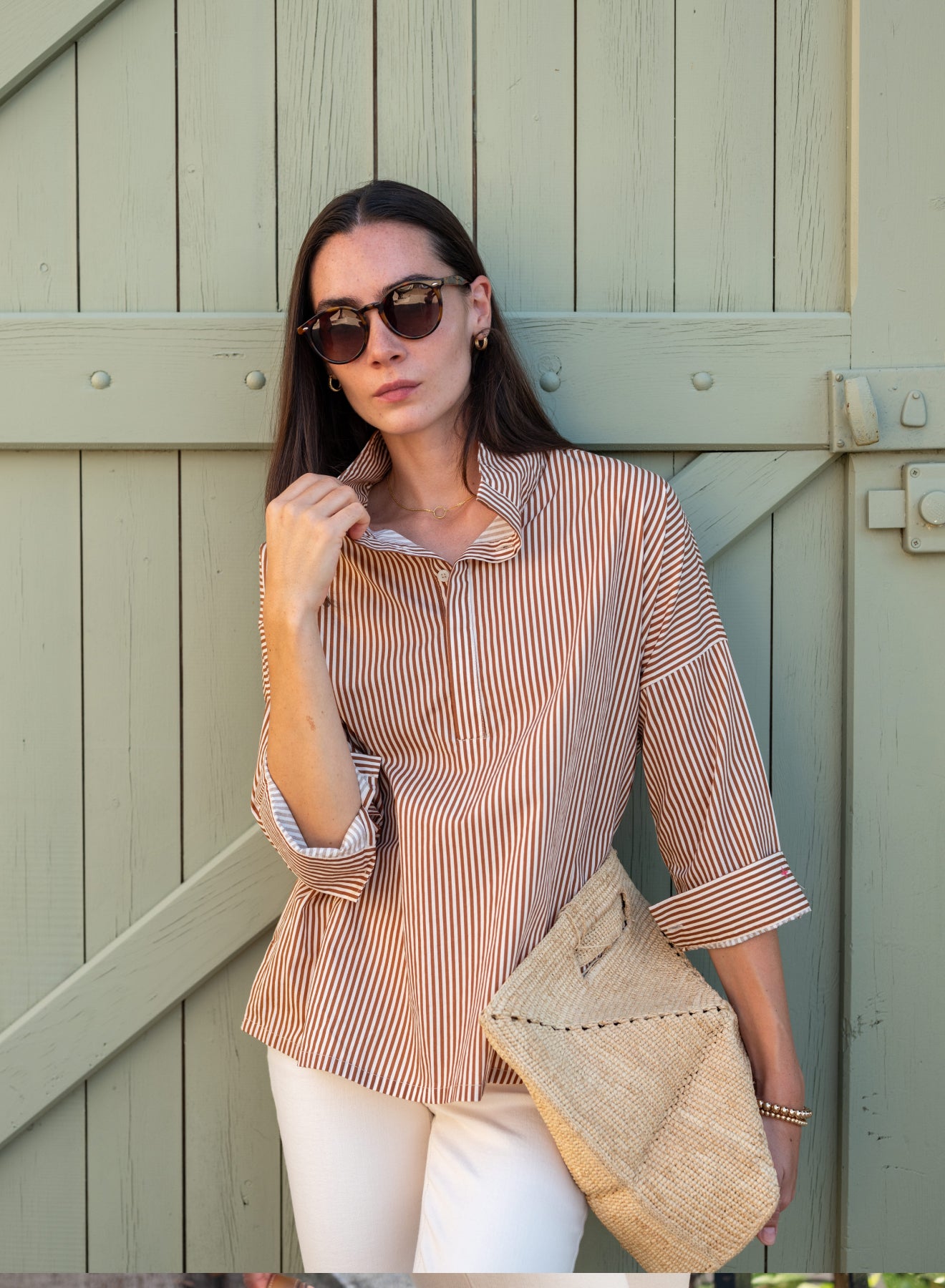 A popped collar makes any outfit sophisticated and chic, even if all you did was throw on a pair of your favorite jeans. The Emerson Top is known for its pop-up collar met with Henley Placket hidden buttons.