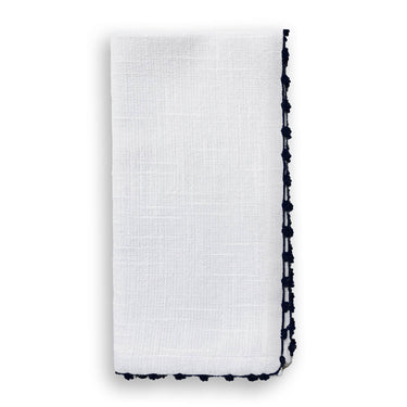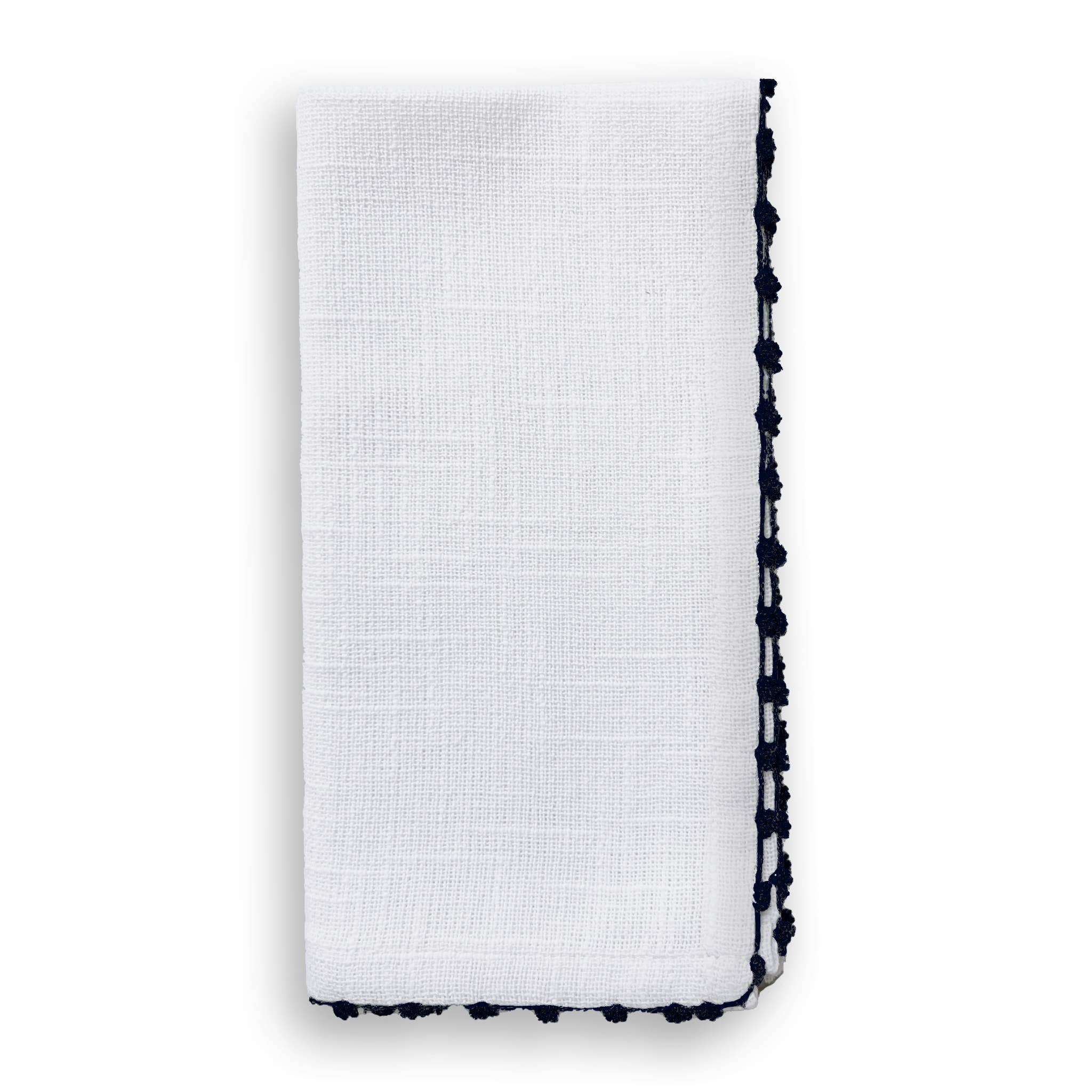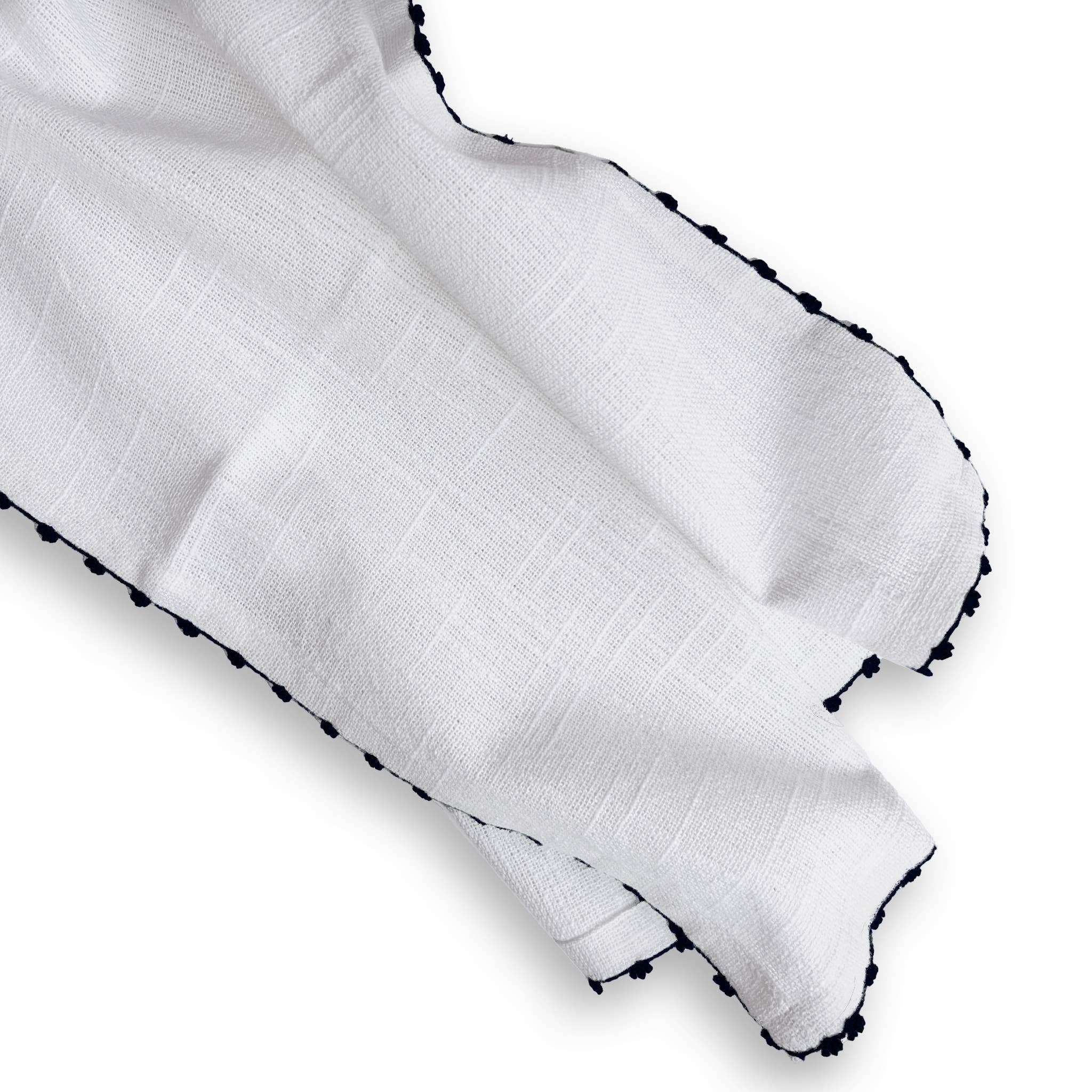 French Graffiti - Knotted Edge Cotton Napkins in White with Black Trim - Set of 4