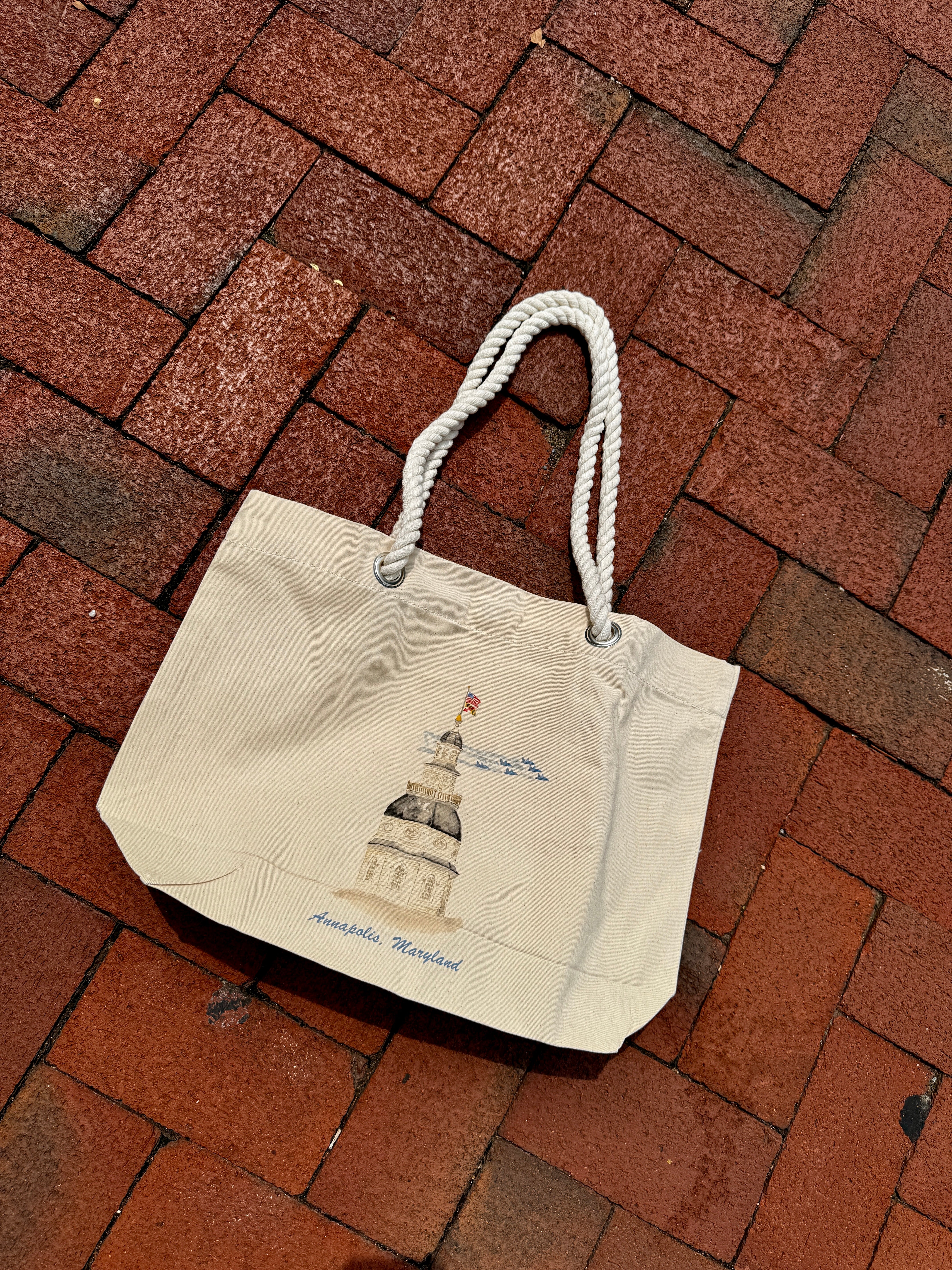 Celebrate your trip to the Annapolis State House with this expertly crafted tote bag. Designed to carry all your keepsakes and essentials, its roomy interior ensures you have ample space for everything you collect during your visit.