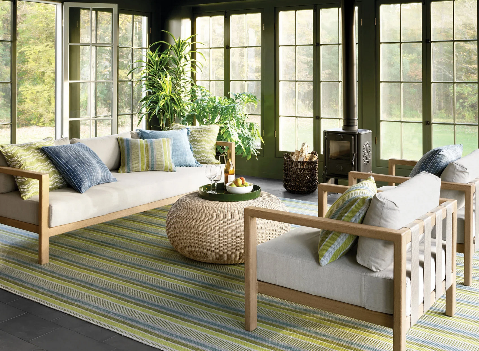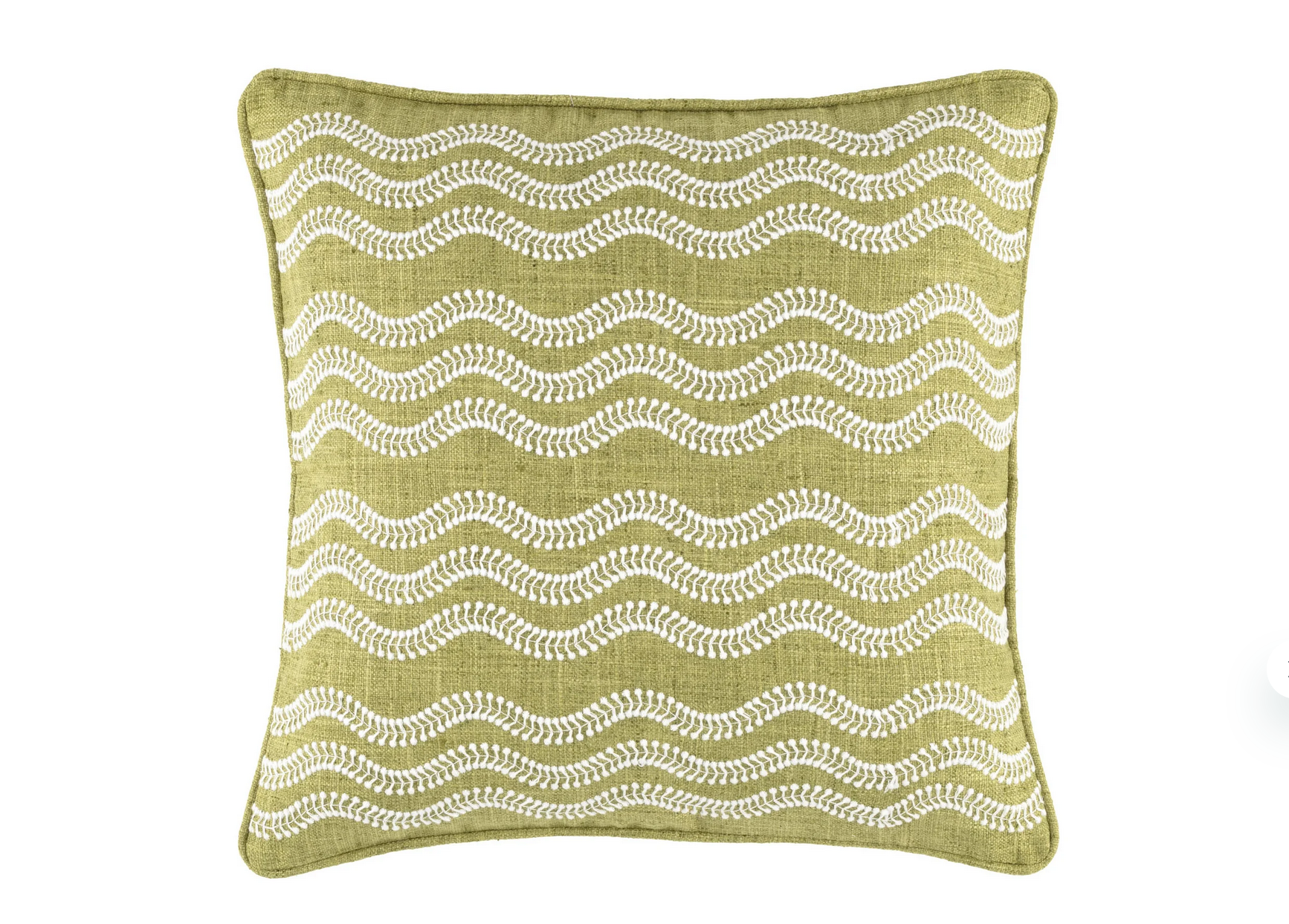 Featuring a textured embroidered design of a French Blue background and white wavy bands, this pillow is made from high performance Greylock fabric with striated color variation and a distressed effect. A perfect blend of technology and style, it replicates the faded, vintage patina of natural indigo-dyed handspun flax while being resistant to weather, stains, mildew, and fading. Whether used indoors or outdoors, this stunning pillow will elevate any space.