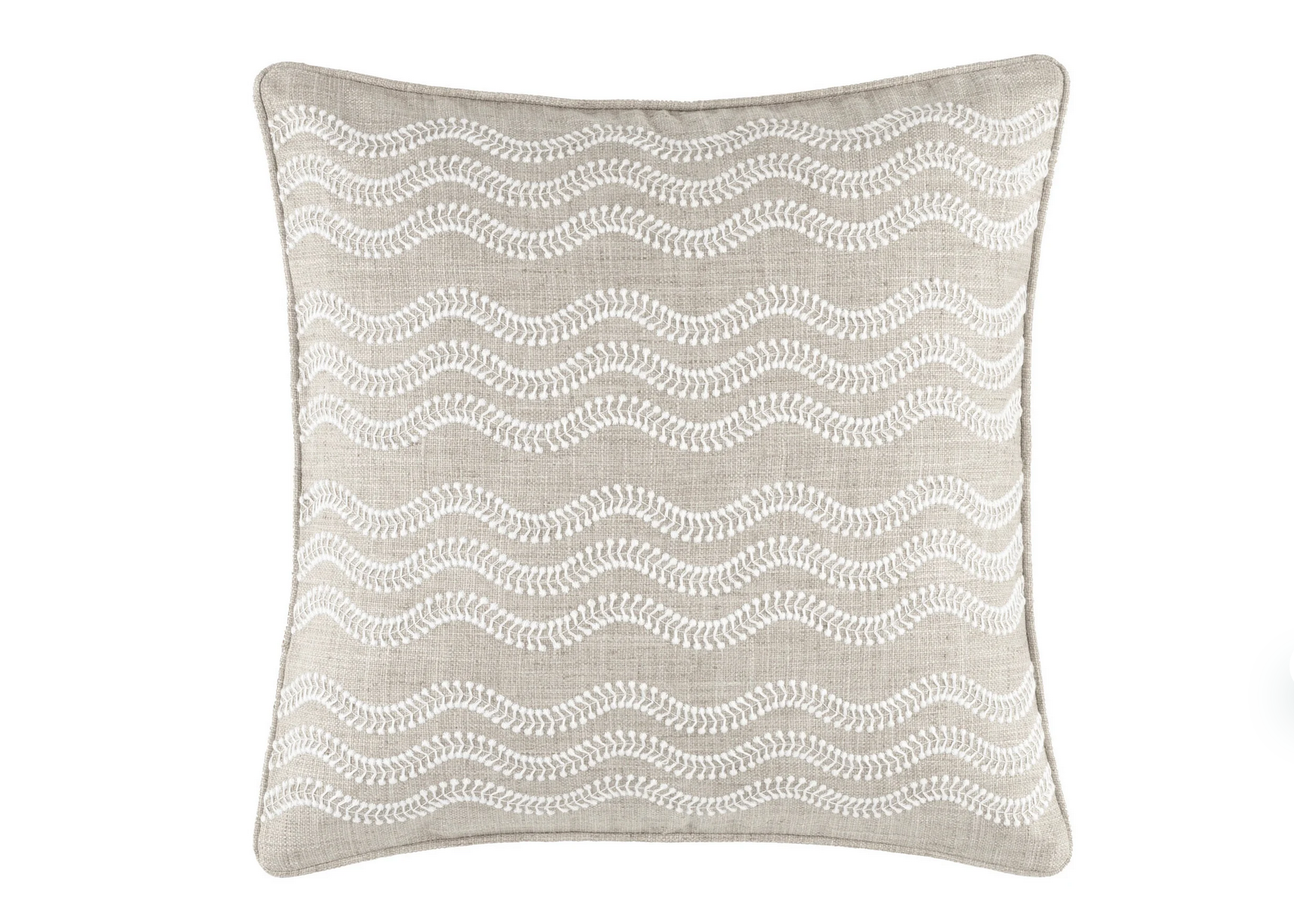 Featuring a textured embroidered design of a Grey background and white wavy bands, this pillow is made from high performance Greylock fabric with striated color variation and a distressed effect. A perfect blend of technology and style, it replicates the faded, vintage patina of natural indigo-dyed handspun flax while being resistant to weather, stains, mildew, and fading. Whether used indoors or outdoors, this stunning pillow will elevate any space.