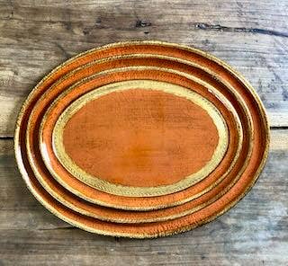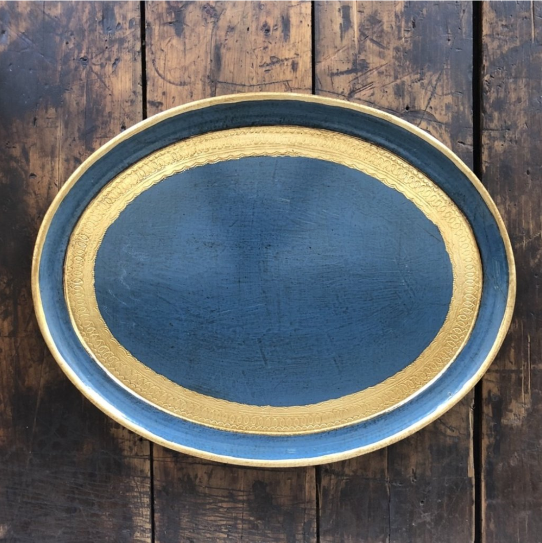 Gorgeous wood oval trays hand finished with centuries-old tools. Available in 3 sizes and 3 colors, these trays add a beautiful touch to any room. Use as a serving tray and when not in service, place on your sideboard, console, cocktail or dining table. The colors add a layer of interest to any room. Made in Italy.