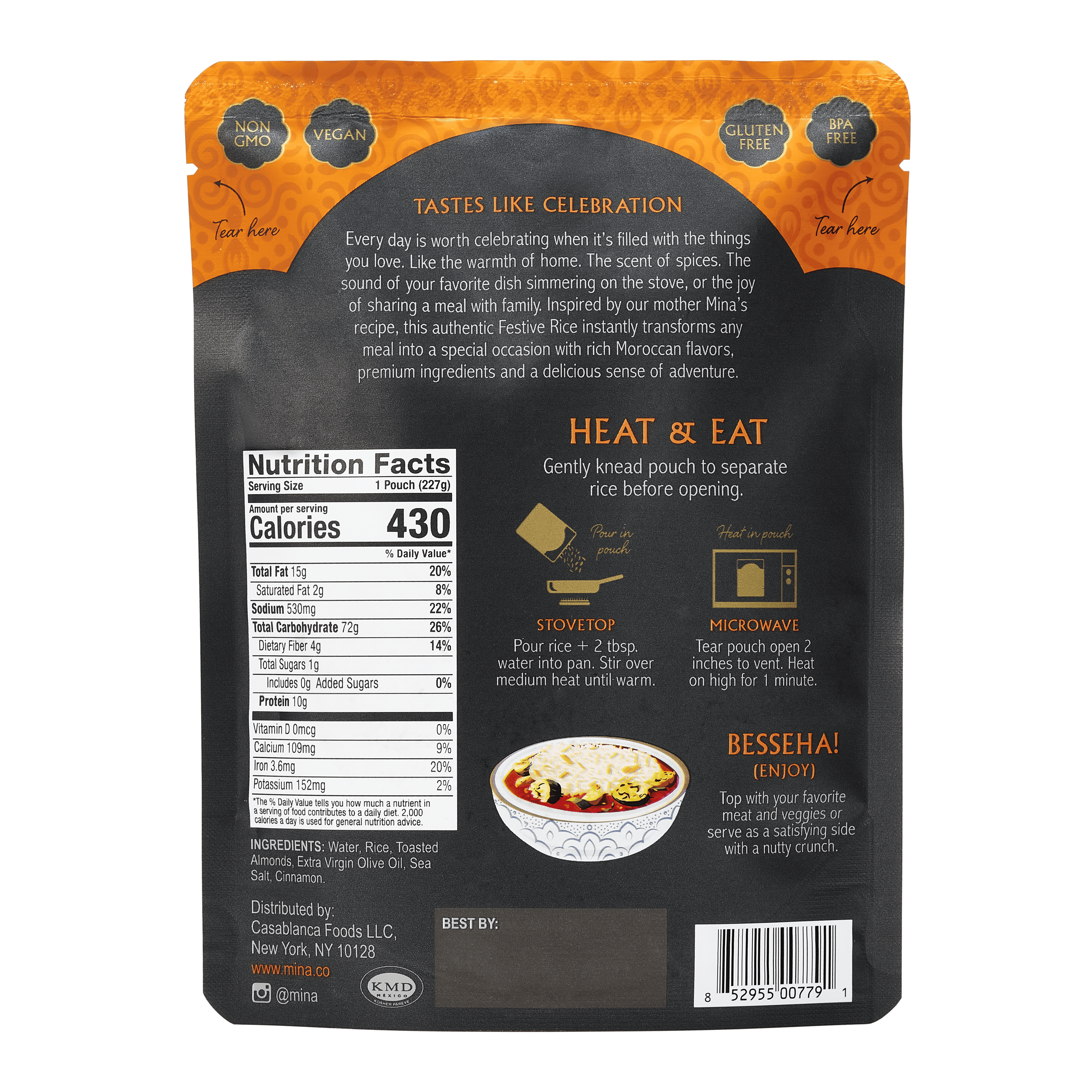 Inspired by traditional Moroccan seffa — a sweet-and-savory dish served on special occasions – our festive rice updates a classic recipe for the modern palate. Our version combines tender rice with the satisfying crunch of toasted almonds and a hint of warming cinnamon to bring the taste of Morocco to your table in minutes. A versatile yet unique addition to any meal where rice is welcome.