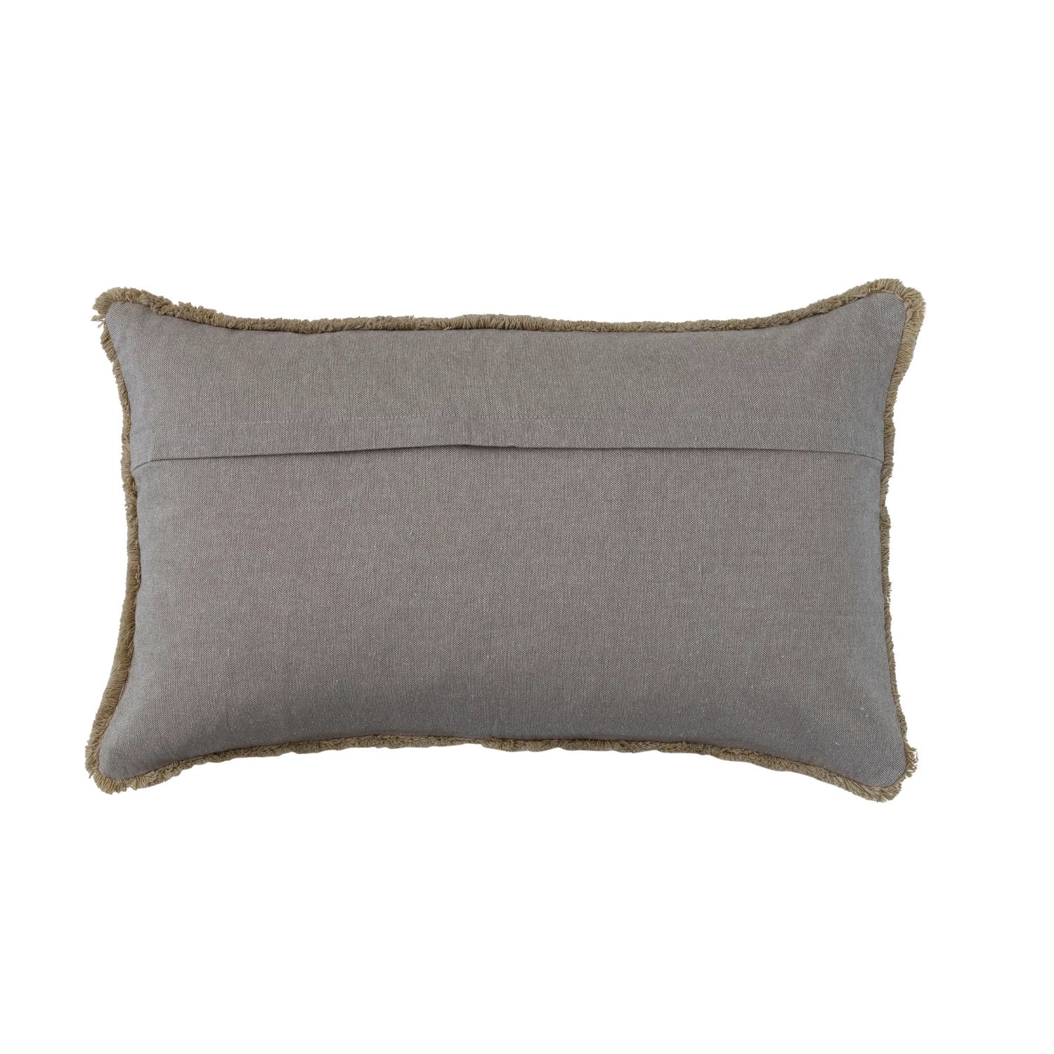 This lumbar pillow boasts a striking global design with tufted geometric embroidery and soft cotton fabric. Perfect for any style from transitional to global, this pillow is finished with decorative fringe and is ideal for displaying in a bedroom or living space.
