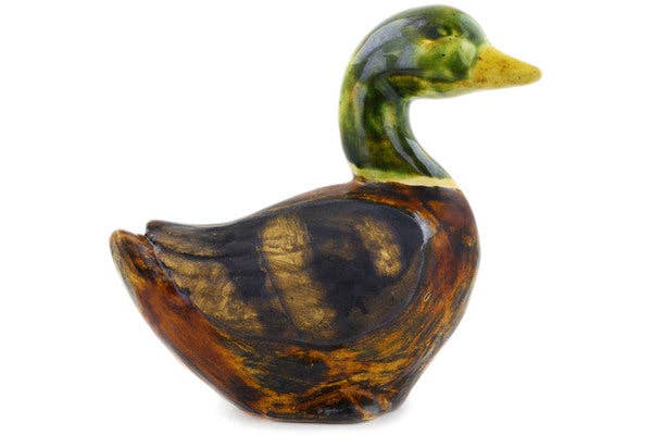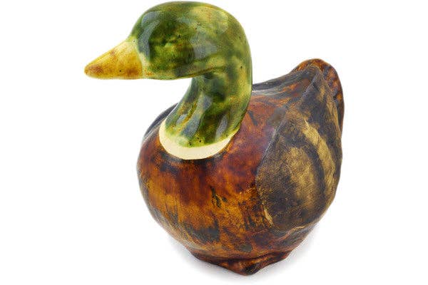 This 13" Polish pottery duck figurine is handmade and hand-painted in Boleslawiec, Poland using traditional methods.