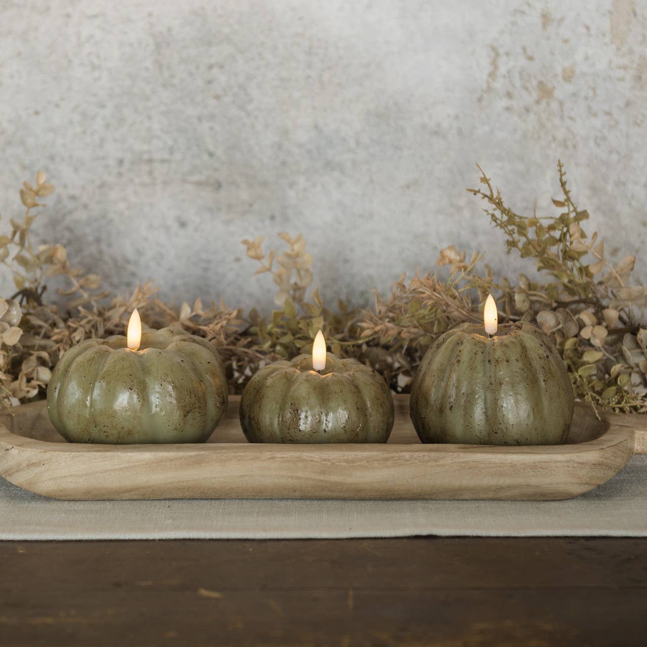The Ragon House Green 3D Flame Short Pumpkin Candle offers realistic ambiance with its lifelike flame effect. Featuring a convenient 6-hour timer and easy-to-use on/off button, this candle provides hassle-free operation. Powered by 2 AA batteries (not included), it delivers extended use without the worry of flames or smoke, making it a safe and elegant decoration for any setting.