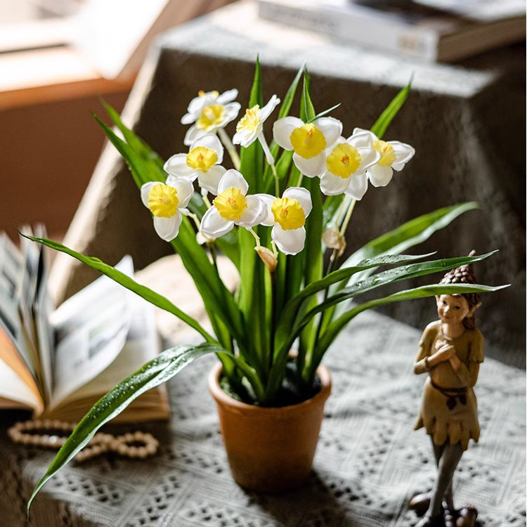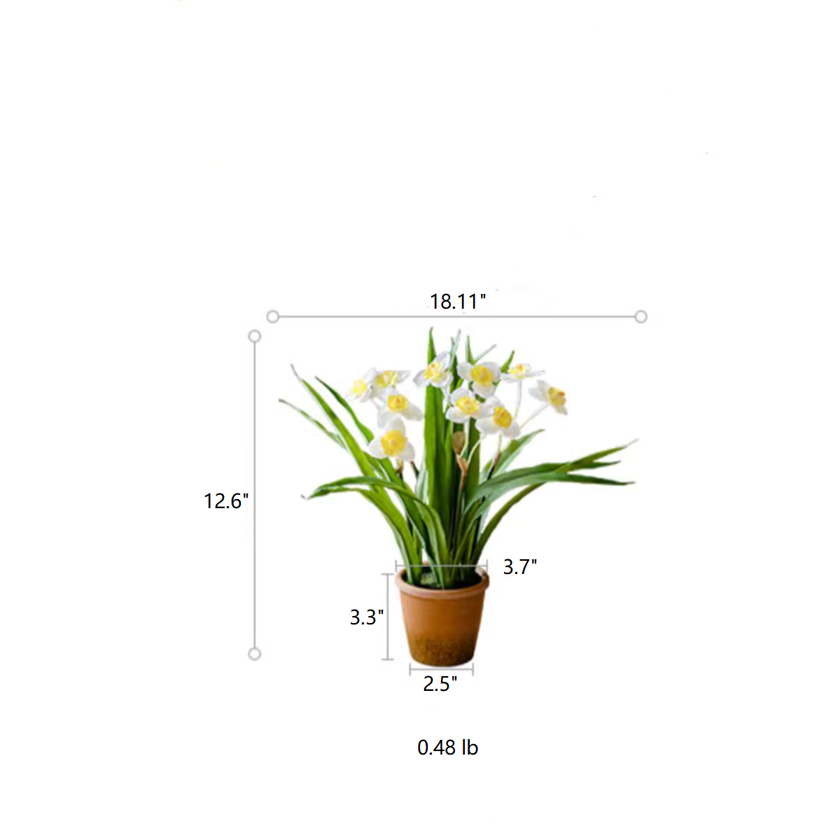 Add a touch of natural charm to any space with Rustic Reach's Faux Daffodil in Brown Pot. These lifelike daffodils, housed in a mossed terracotta pot, bring the beauty of spring indoors without the need for maintenance. Perfect for adding a pop of color to your home or office.