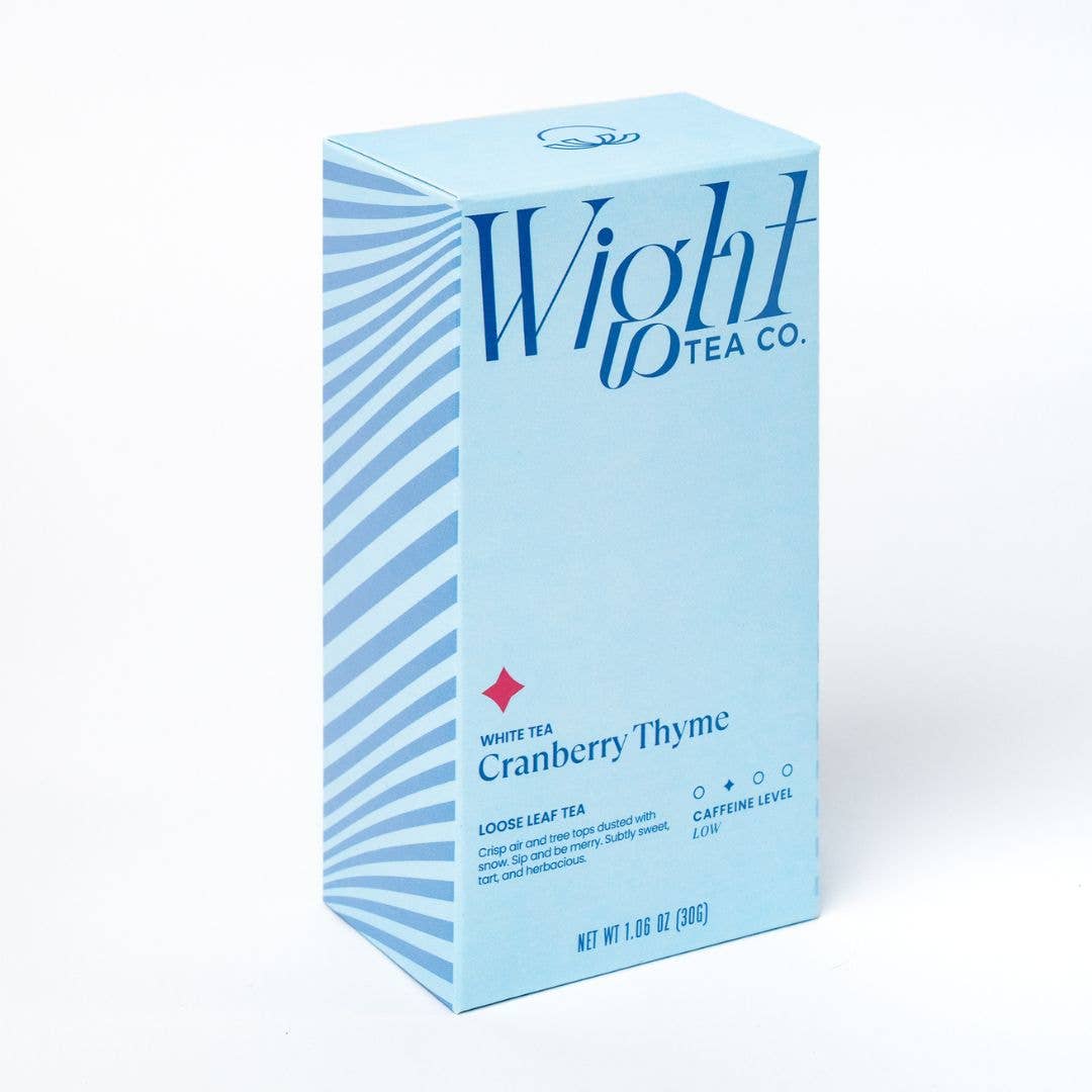 Cranberry Thyme is a loose leaf white tea that recalls the holiday season with tart cranberries and herbaceous thyme. This delicious, delicate, mildly-caffeinated blend is perfectly paired with gingerbread cookies and a good book.