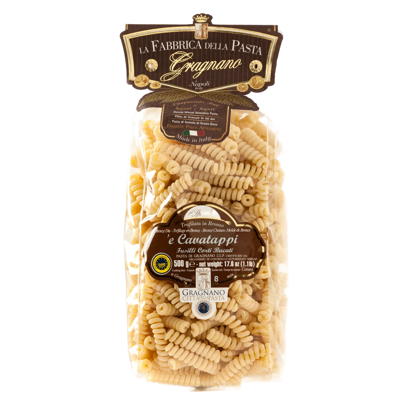 Cavatappi, which transaltes to "corkscrews," is a short, spiral-shaped pasta tube, great for serving with sauces, in salads, and baked in casseroles. La Fabbrica della Pasta has been making pasta for three generations in Gragnano, a small town nestled in the hills near Naples, famous for its pasta production for over 500 years.