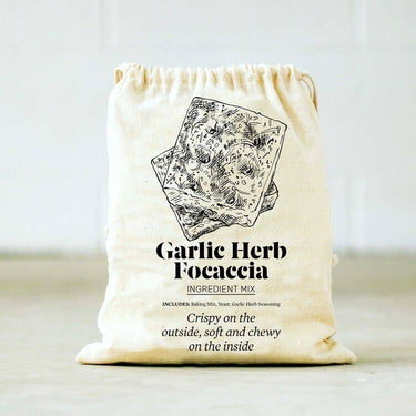 Garlic Herb Focaccia Baking Mix Includes: - Baking Mix - Baking Yeast - Garlic & Herb Seasoning