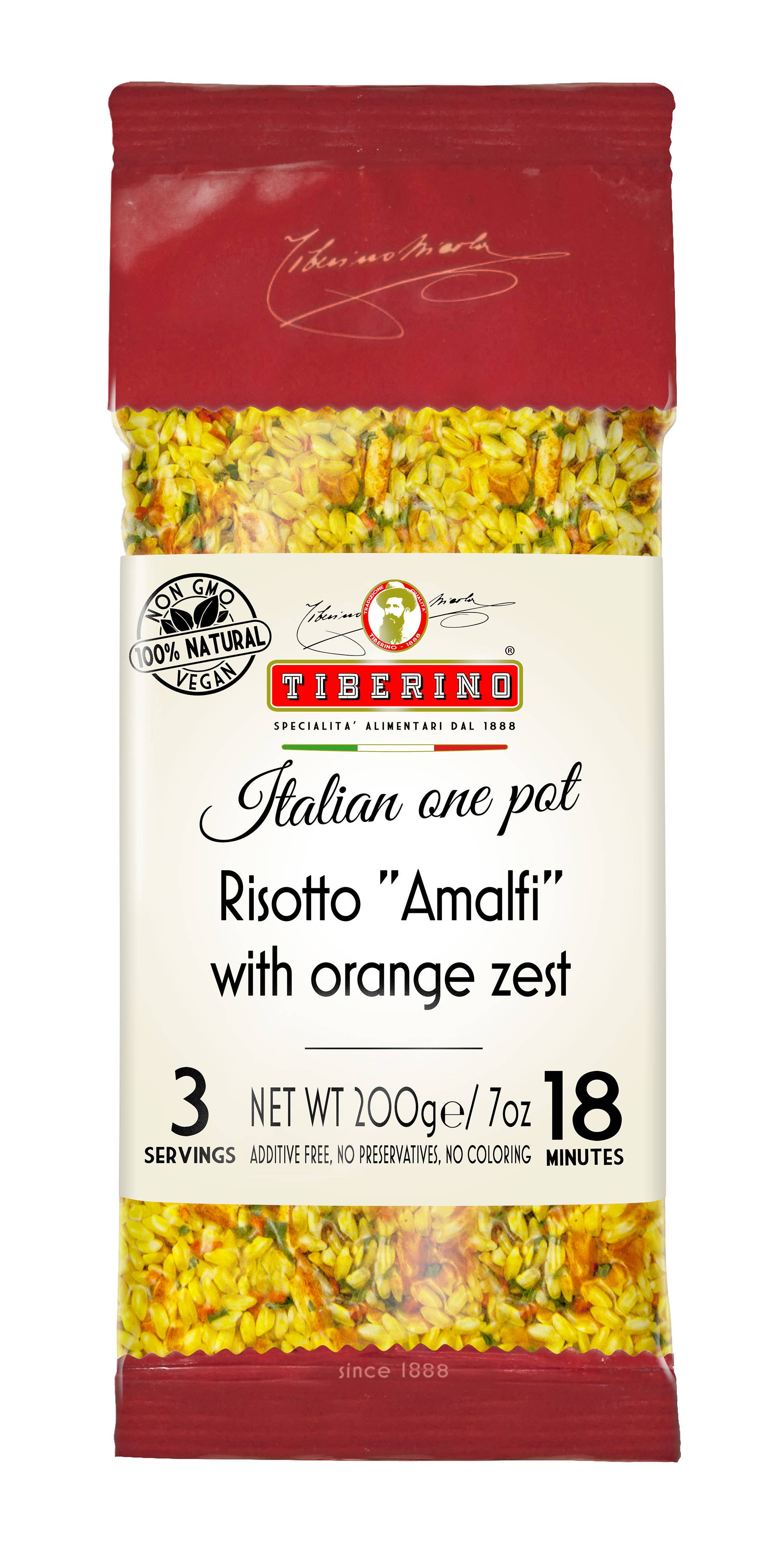This traditional Italian risotto is made from 100% natural ingredients and is ready to cook in just three easy steps. Amalfi Risotto with Orange Zest is made with a blend of Italian premium rice, orange zest and a blend of fine herbs.