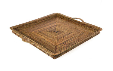 A square tray hand woven from water vines in the South Pacific that makes an ideal catch all for coffee tables and is suitable for holding glasses and food to protect surfaces beneath it.