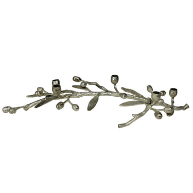 Crafted from aluminum with a raw silver finish, this distinctive taper holder accommodates five candles, adding an elegant touch of nature-inspired design to your table setting. Enhance its charm by placing fresh garden sprigs in the holder, perfect for crafting a striking seasonal centerpiece.
