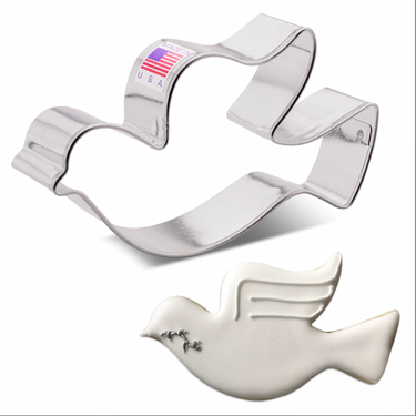 A symbol of peace, the Flying Dove Cookie Cutter, 4 3/8", is ideal for a Christmas cookie platter. It also looks lovely as a Christmas tree decoration or attached to a gift.