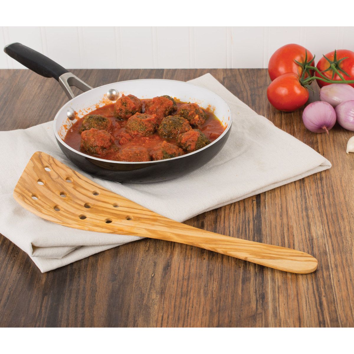 Eddington's Olive Wood Pierced Spatula makes cooking beautiful and easy. For all of your food preparation, cooking, baking and serving, this is a perfect kitchen utensil for whipping up everything from a snack to an evening meal and holiday feast.