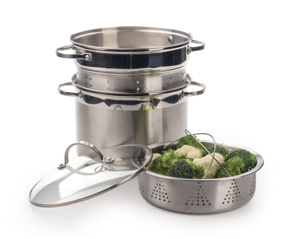 Perfect four sop making, steaming, or making a batch of your favorite pasta and easily straining. This multi-cooker is perfect for anyone with limited storage.