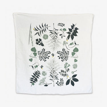 June & December's Fireflies pattern features deep greens and blues to mimic the night lighten by fireflies. Screen printed on flour sack cotton to preserve its uniquely soft, absorbent, and durable nature, this towel is machine washable and safe to bleach, allowing it to hold up for everyday use.
