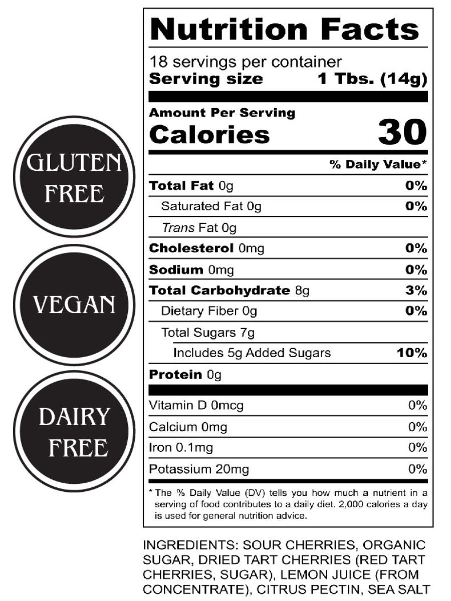 Our Sour Cherry Jam tastes just like eating a fresh cherry pie! This low sugar jam is a perfect balance between sweet and tart, and is made with more than half a pound of fresh fruit per jar. One bite, and you will immediately be reminded of summertime and the taste of fresh picked cherries.