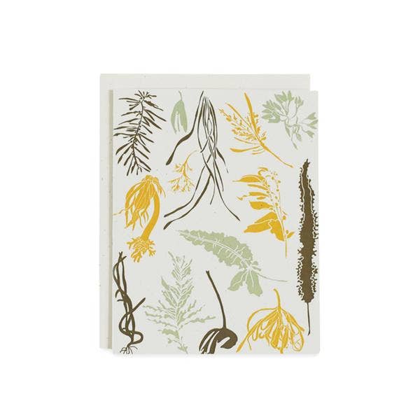 Each card is assembled by hand in their Berkley, MI studio. Cards are blank inside. - Size : A2 / 4.25” x 5.5” - Detail : blank inside + cream envelope, speckled 100% recycled card stock, envelopes are milled in Michigan with hydroelectricity - Packaged : with envelope in clear sleeve - Made : June & December / USA