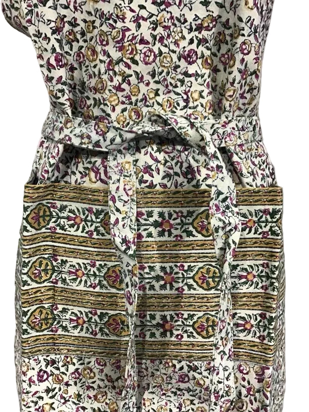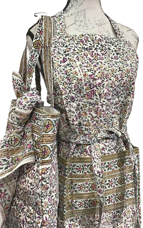Crafted from durable cotton canvas with hand block printing, this versatile apron features an adjustable button-closure neck strap for a customized fit. One-size design suits most wearers, and machine washing keeps it easy to maintain.