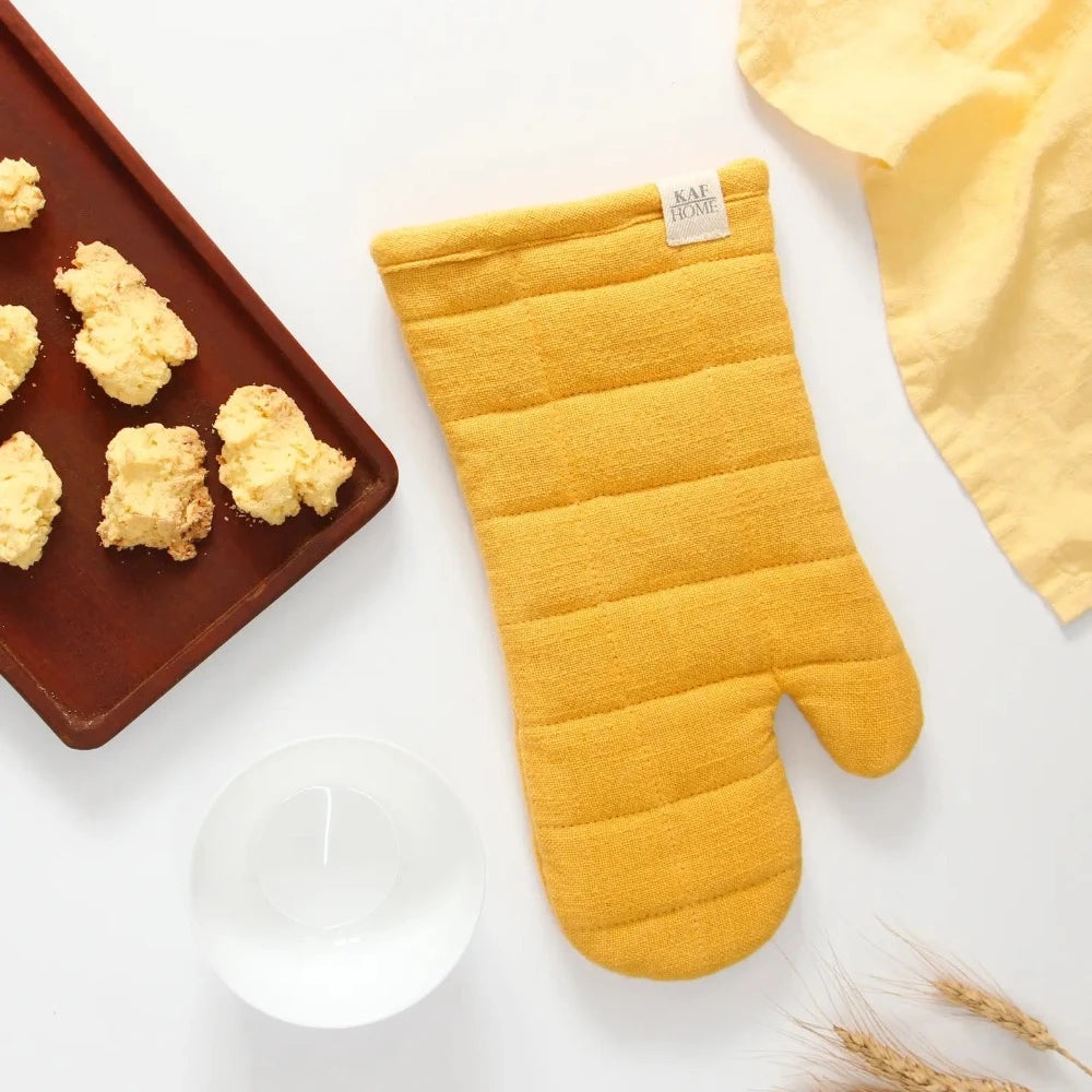 This KAF Home Monaco cotton & silicone oven mitts provide excellent heat protection while cooking any home-cooked dish.These oven mitts feature a vibrant color scheme and a quilted design that adds both style and functionality.