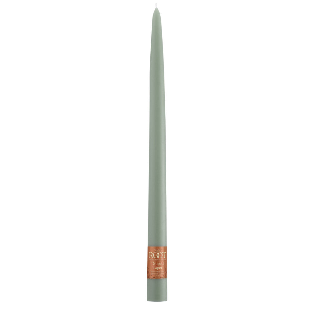 Truly reflective of Root Candle’s world-renowned quality, our beeswax enhanced Dipped Taper candles are hand dipped continuously to create up to 35 individual layers of wax. The result is a satin-like finish with solid, consistently colored unscented wax throughout, creating a dinner candle that is both natural and elegant.
