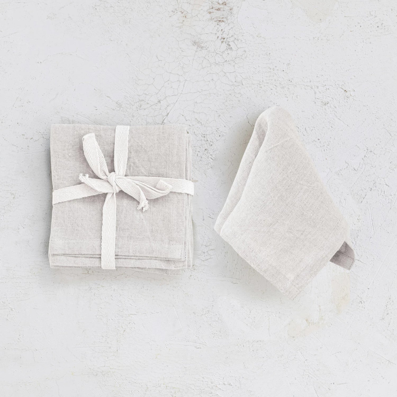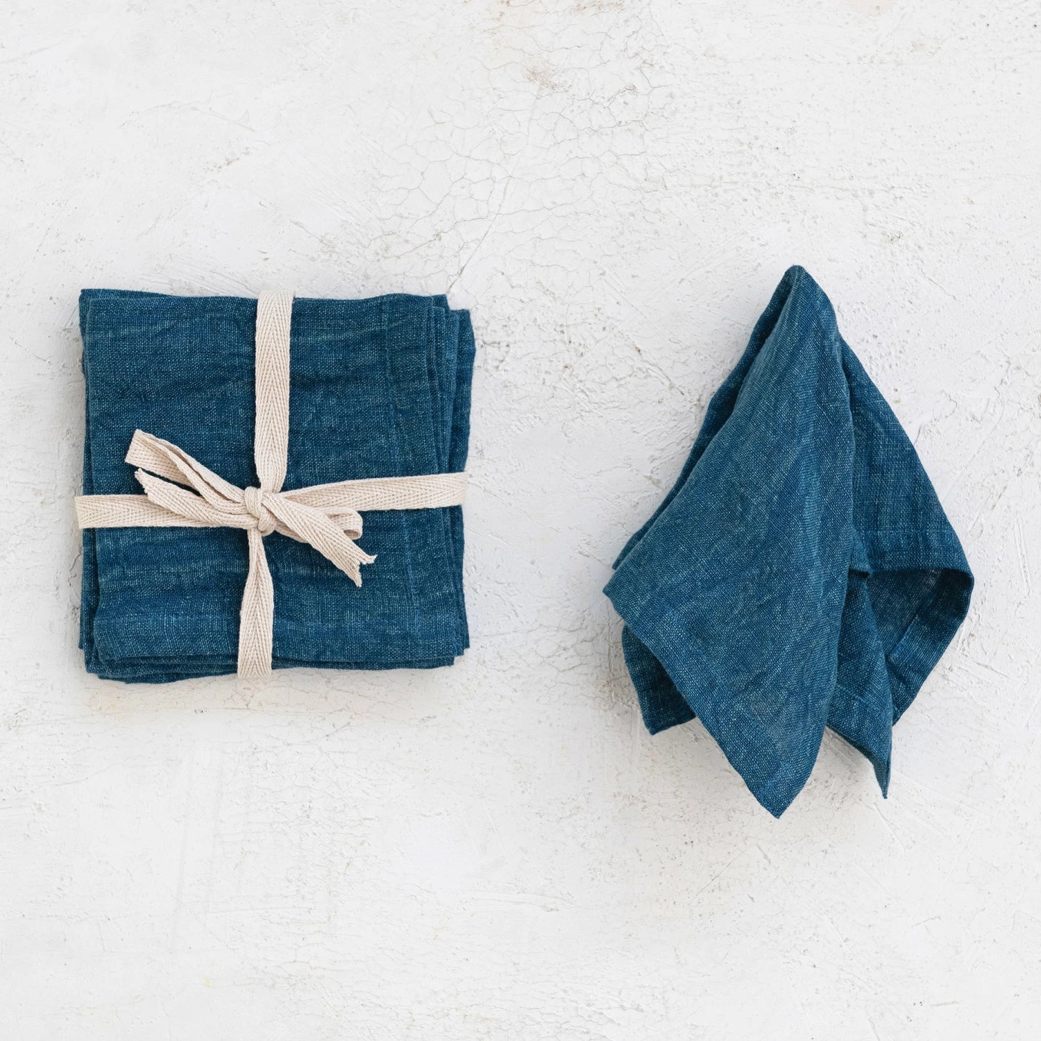 Stonewashed Linen Cocktail Napkins, Multiple Styles