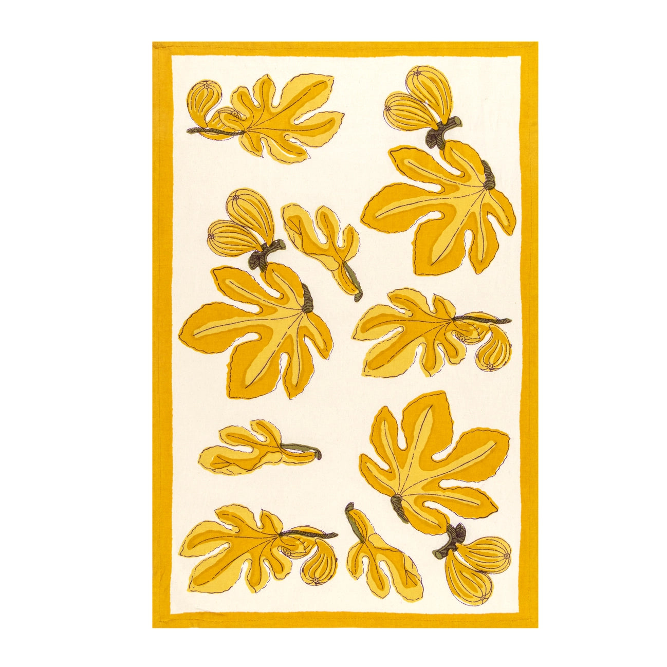 With rich, invigorating colors, this pattern showcases citrine yellow leaves against an ivory backdrop. This makes an excellent table setting, whether for special occasions or everyday entertaining. This French linen — available in round, square, and rectangle shapes — has been carefully handprinted by skilled artisans using a time-honored technique, resulting in a singular piece of craftsmanship.