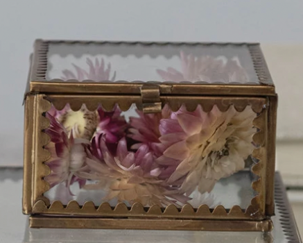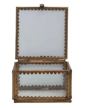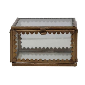 3" Square x 1-3/4"H Brass & Glass Display Box w/ Scalloped Edges
