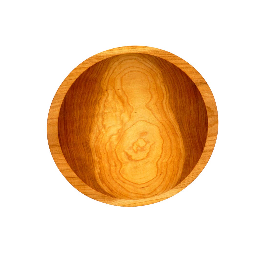 Handcrafted in the United States, our Cherry Wooden Salad Bowl is constructed from a single, solid piece of American Cherry wood. The interior highlights the intricate, organic design of the tree's rings. Experience the long-lasting quality of this bowl, supported by our lifetime guarantee. Choose from two sizes, sold separately. Made in the US.
