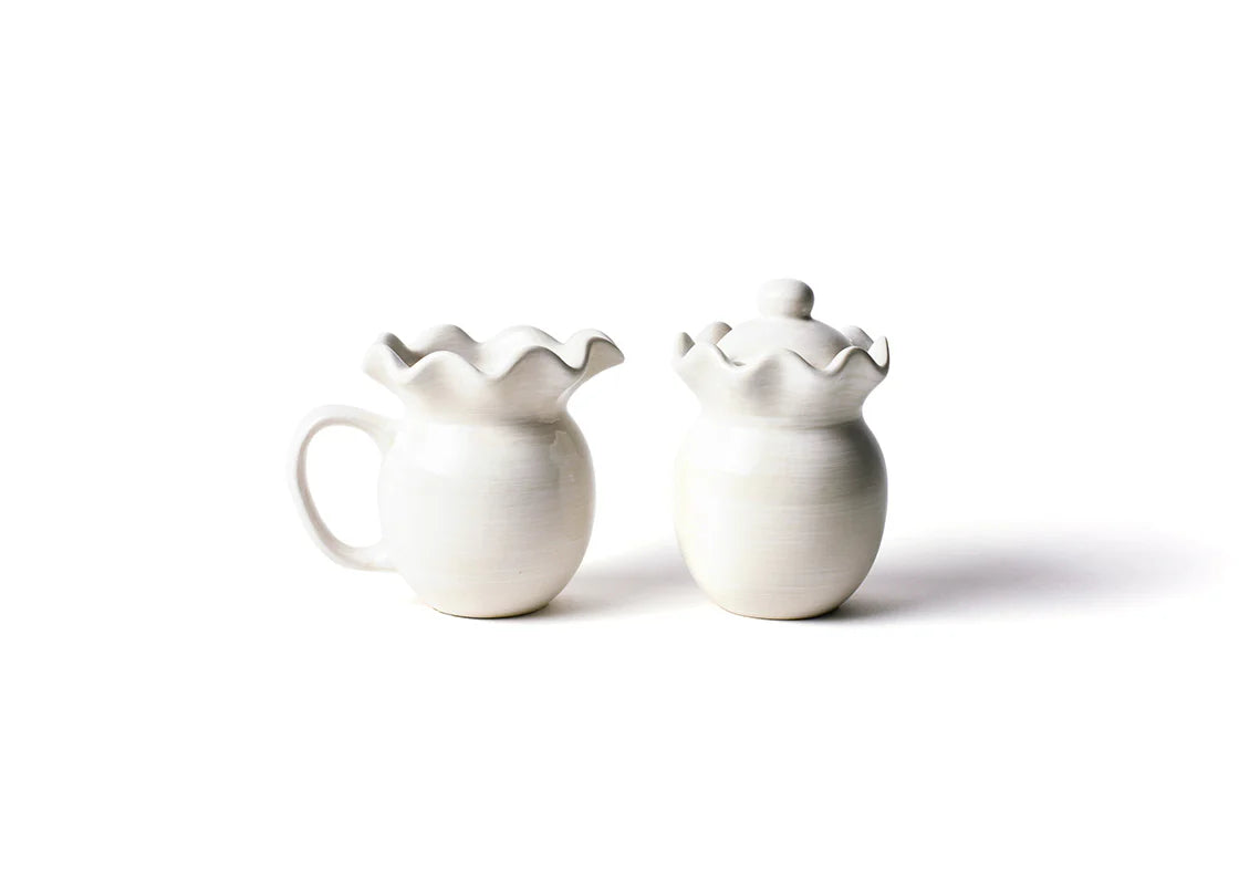 The Signature White Ruffle Cream and Sugar Set is both charming and practical. Whether you're entertaining guests or just using it every day, this delightful design is sure to bring joy to your routine. Complete your collection with the Signature White Ruffle Mug - it's the perfect match!
