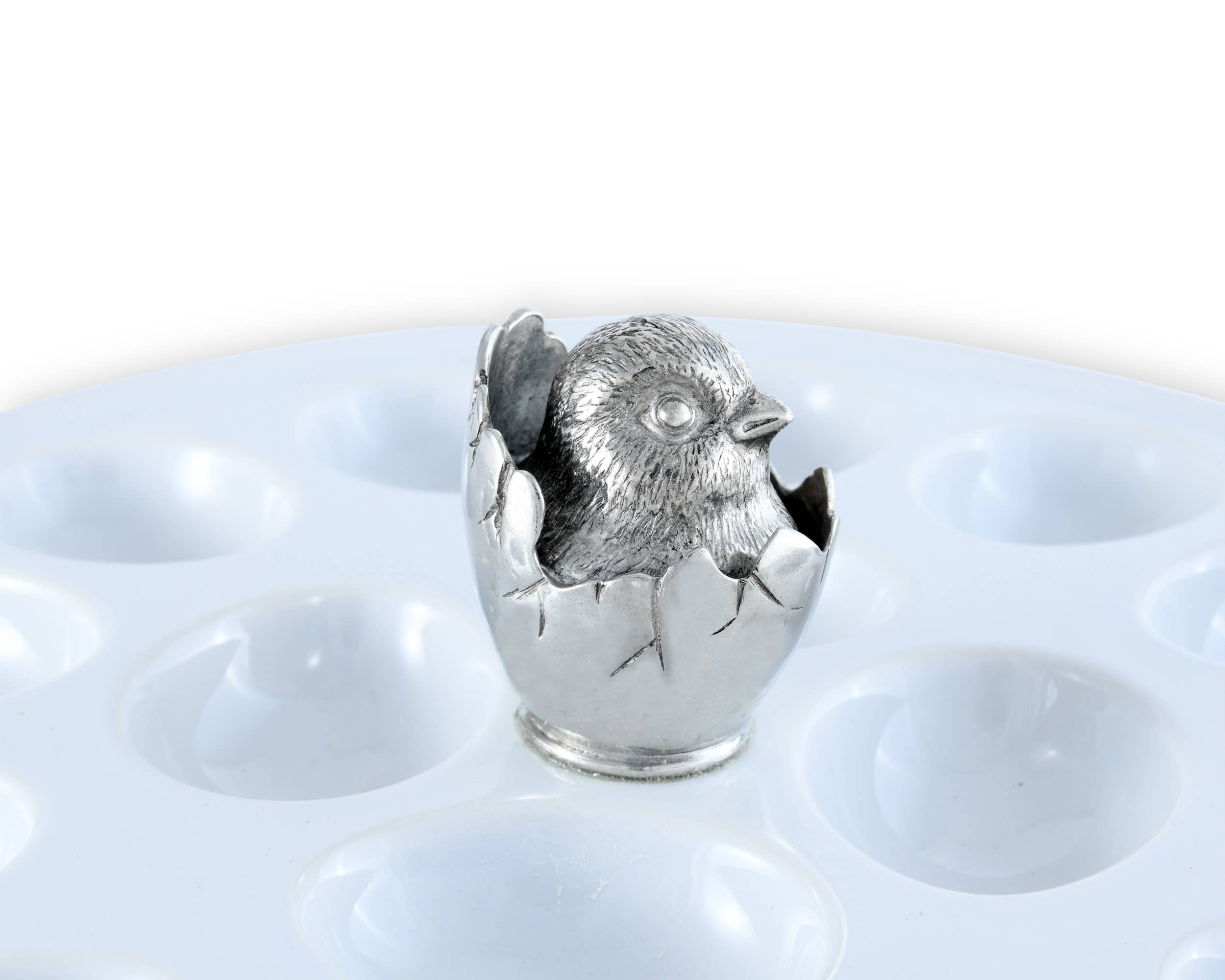 Ceramic and Pewter Deviled Egg Holder - Little Chick Design