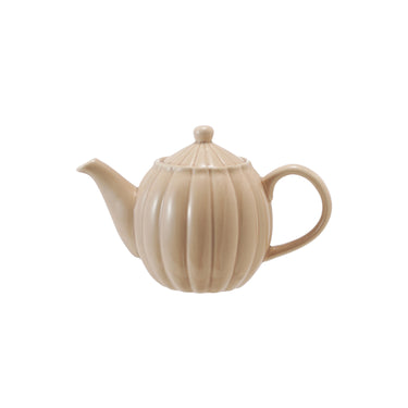 34 oz. Stoneware Ribbed Teapot, Reactive Glaze, Cream Color (Each One Will Vary)