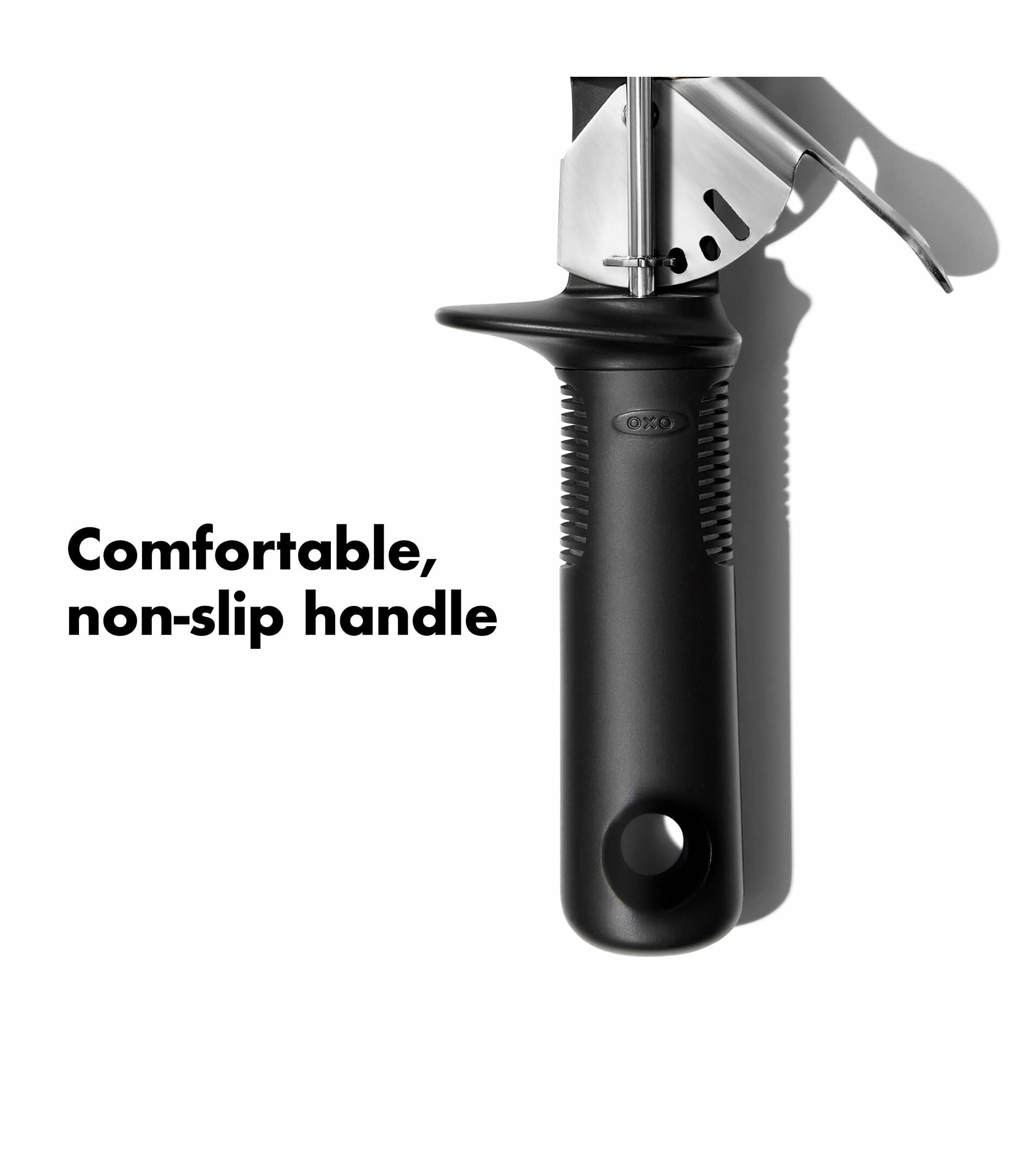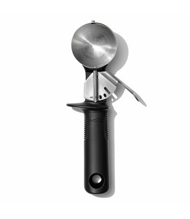The OXO Good Grips Classic Ice Cream Scoop lets you dish up cone after cone like a soda fountain pro. It’s designed with a pop-up lever that releases scoops of ice cream, sorbet and sherbet with a simple press. The handle features a soft, non-slip grip that absorbs pressure to minimize effort even when scooping hard ice cream. This Scoop is constructed with durable stainless steel that won’t chip, pit or rust, and it’s dishwasher safe.