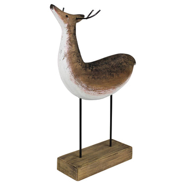 Add rustic charm to your holiday decor with our natural wood deer figurine. Perfect for a cozy seasonal atmosphere.