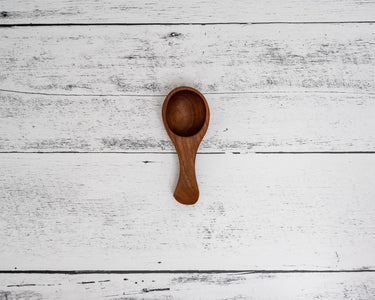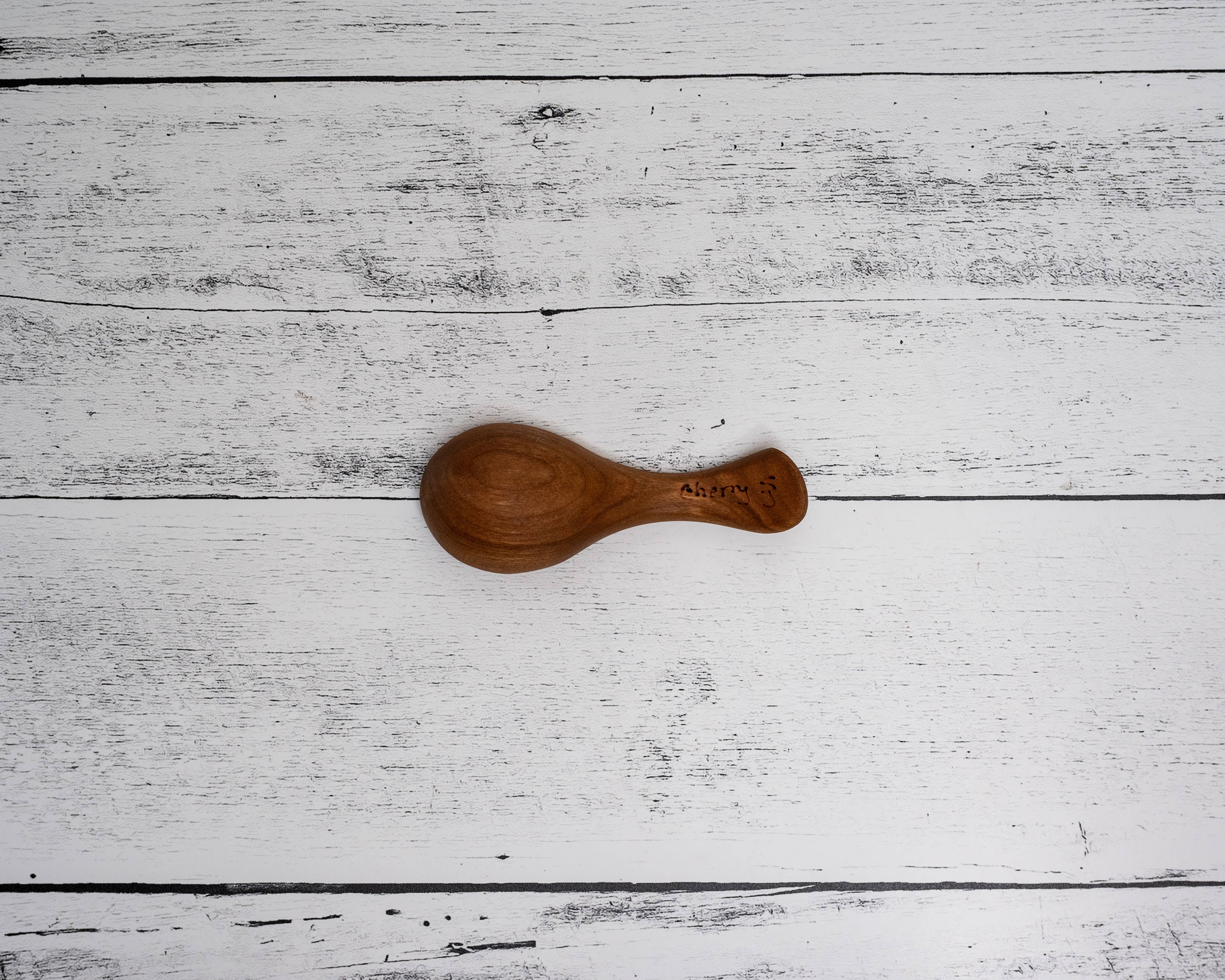These cherry coffee scoops are a great addition to the kitchen. The beautiful shape and ease of use make it a favorite. Made from WV cherry wood.