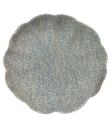 Large scalloped edge serving bowl in Opal, a serene light blue. This bowl features Terrafirma’s ‘Pebble’ pattern.
