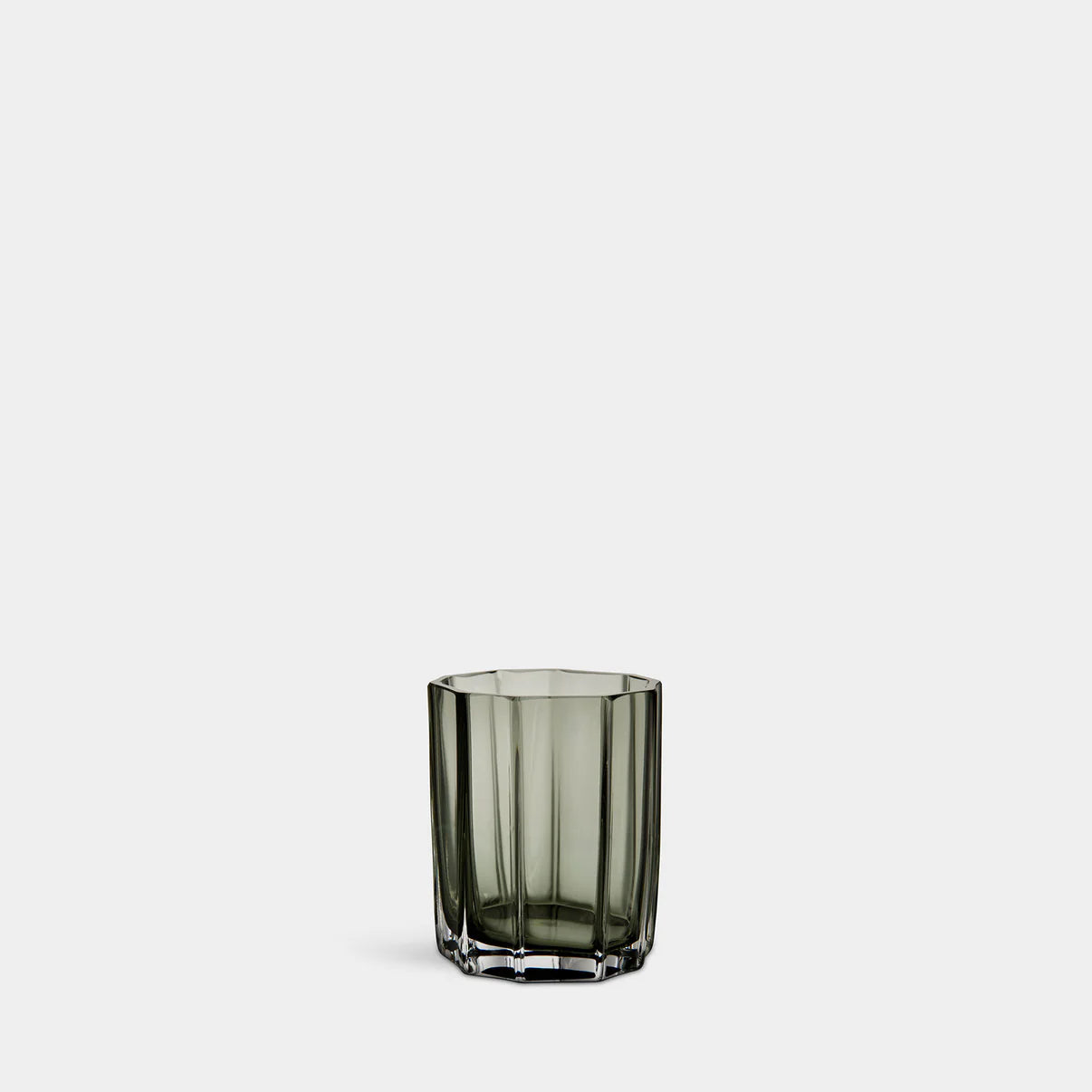 With Reed, Monica Förster highlights the folds and in the process creates a sense of organic movement. A gentle swaying in the hard glass. The collection features a variety of vases, two votives and a hurricane lamp. This votive is made of moss colored glass and is 3.5 inches high.